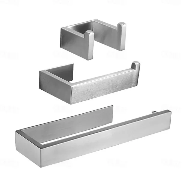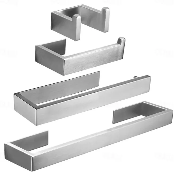 – Multi-functional bathroom accessory set, featuring a towel bar, toilet paper holder and more.