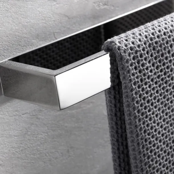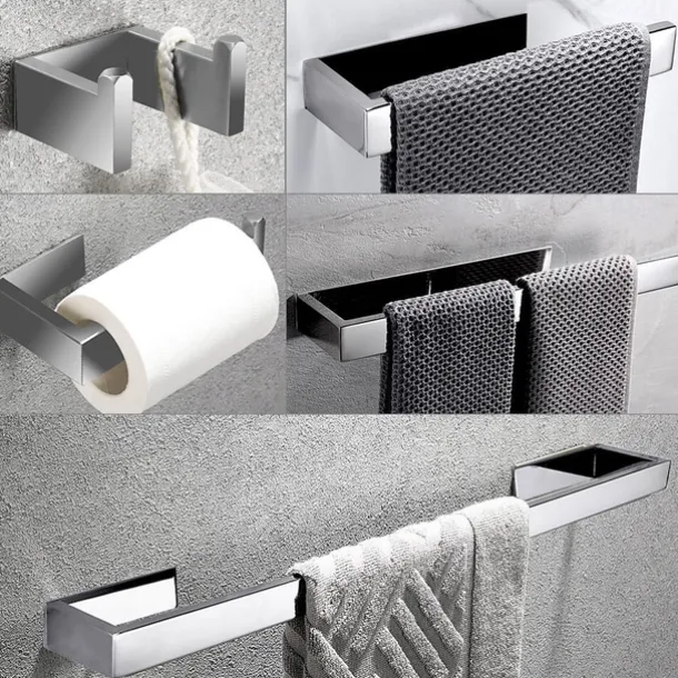 – The set comes in Chrome finishing, with easy-to-mount options of wall-mounting or using self-adhesive.