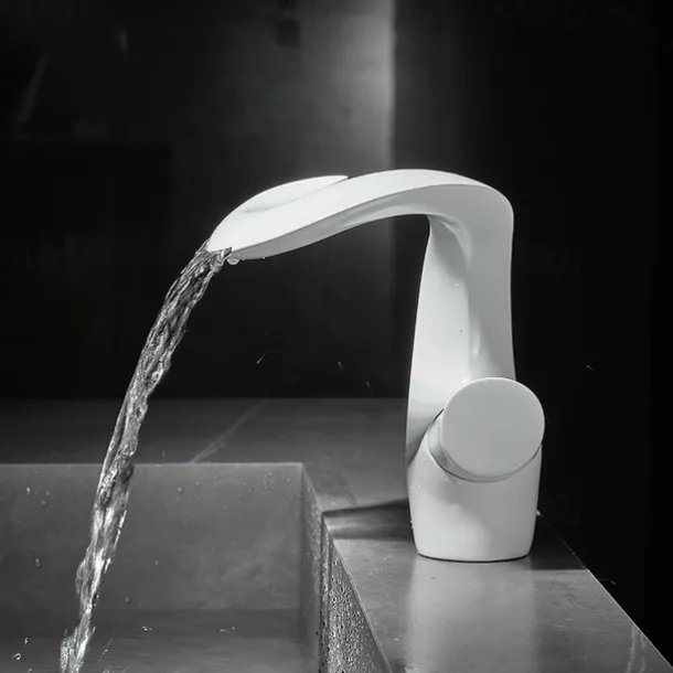 Type: Bathroom Sink Faucet+ Accessories, Style: Modern Contemporary, Minimalist, Features: Waterfall, Faucet Type: Bathroom Sink Faucet, Installation Type: Mount Outside, Number Of Handles: Single Handle, Cold and Hot Switch: Yes, Valve Type: Ceramic Valve, Finish: Painted Finishes, Cell type: no battery, Installation Holes and Handles: Single Handle One Hole, Water Pressure (Mpa): 0.5-1.5,