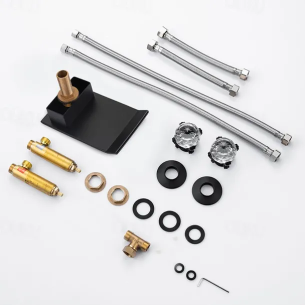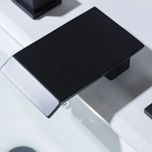 Type: Bathroom Sink Faucets, Style: Modern Contemporary, Features: Waterfall, Widespread, Faucet Type: Bathroom Sink Faucet, Installation Type: Widespread, Number Of Handles: Two Handles, Cold and Hot Switch: Yes, Valve Type: Ceramic Valve, Finish: Electroplated, Painted Finishes, Cell type: no battery, Installation Holes and Handles: Two Handles Three Holes,