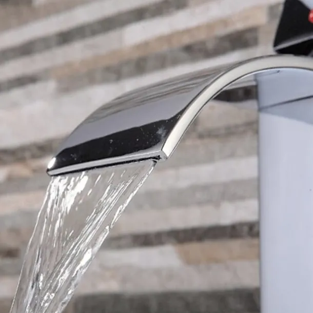 Bathroom Sink Faucet,Brass Single Handle One Hole Silvery Waterfall Concise Style Chrome Centerset Bath Taps