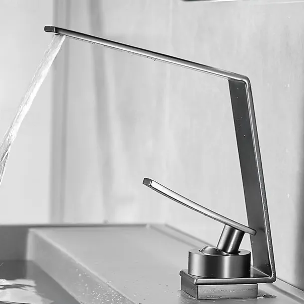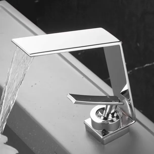 Bathroom Sink Faucet,Waterfall Brass Single Handle One Holes Bath Tap with Hot and Cold Switch