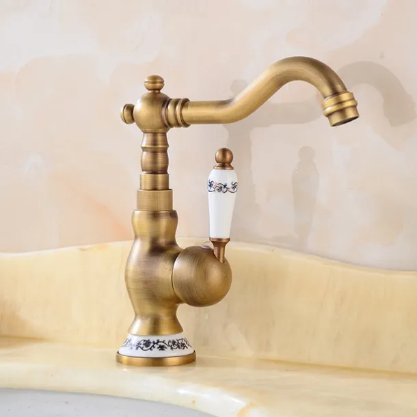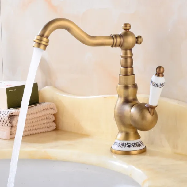 Type: Bathroom Sink Faucet+ Accessories, Style: Contemporary, Minimalist, Features: Rotatable, Classic, Faucet Type: Bathroom Sink Faucet, Installation Type: Centerset, Number Of Handles: Single Handle, Cold and Hot Switch: Yes, Valve Type: Ceramic Valve, Finish: Antique Brass, Electroplated, Cell type: no battery, Installation Holes and Handles: Single Handle One Hole, Water Pressure (Mpa): 0.3-1,