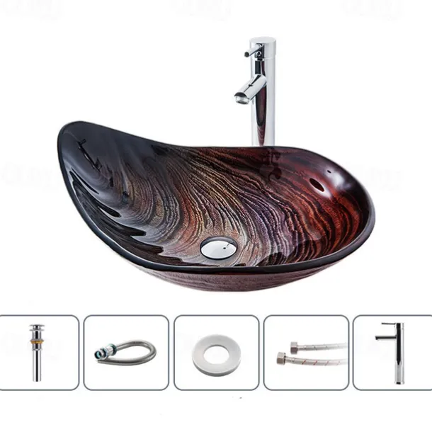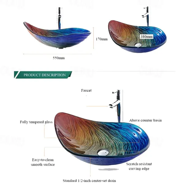 Tempered Glass Material: Tempered glass sink with solid brass faucet for durability and reliability. The ship form is classical, aesthetic, and easy to clean up.