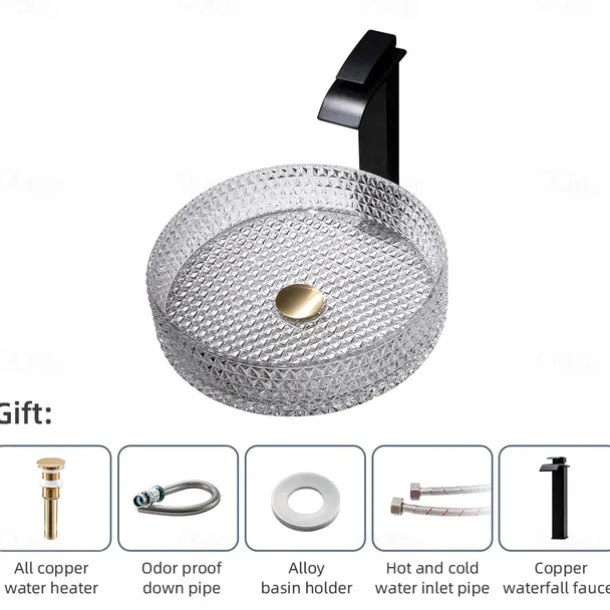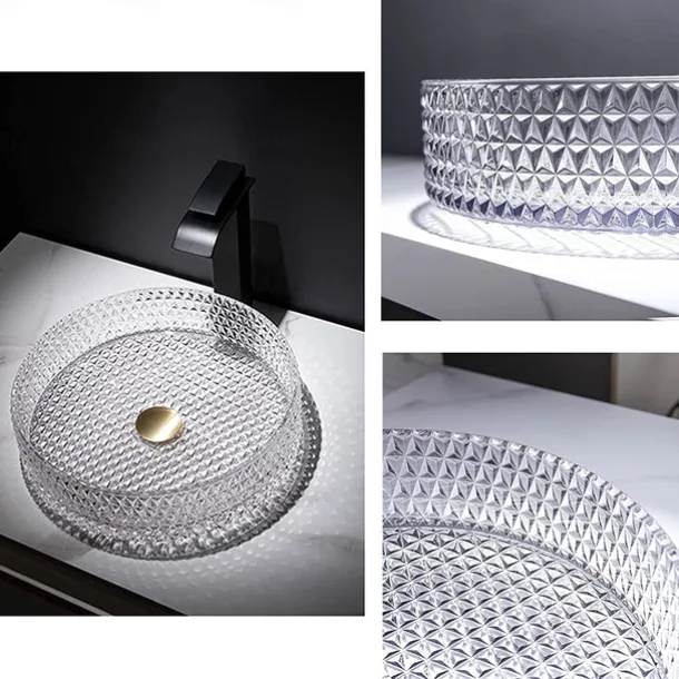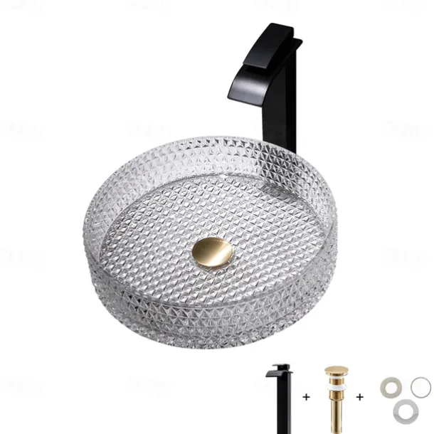 & High quality: The creative bathroom sink is made of sturdy tempered glass and advanced die-casting technology. 12MM thick tempered glass, impact resistance, drop resistance, safety and durability. The matching faucet can adjust the cooling, heating and water output