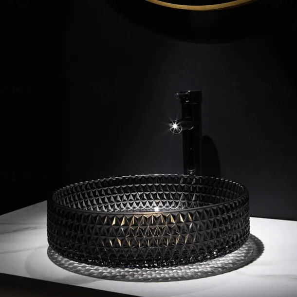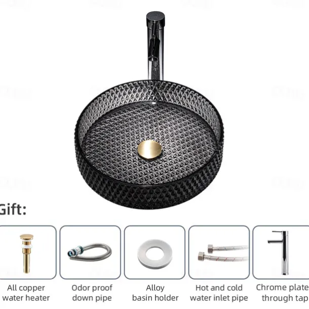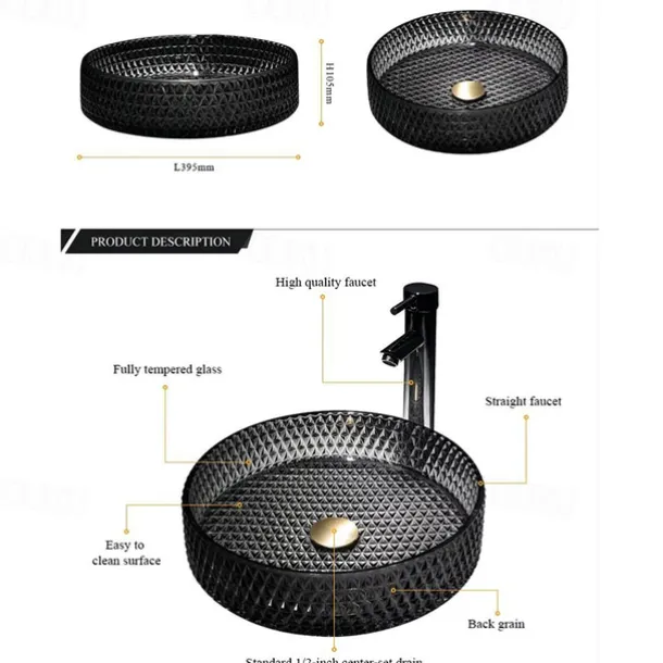 & High quality: The creative bathroom sink is made of sturdy tempered glass and advanced die-casting technology. 12MM thick tempered glass, impact resistance, drop resistance, safety and durability. The matching faucet can adjust the cooling, heating and water output