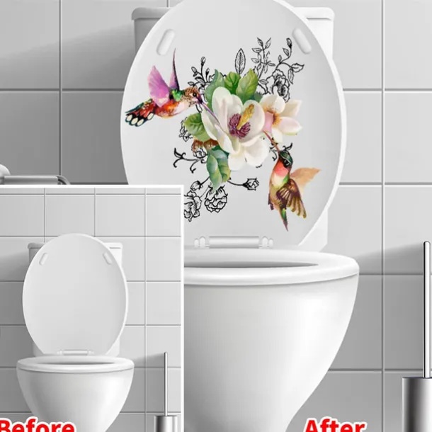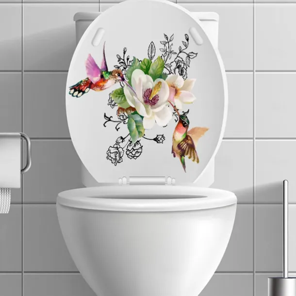 Birds Flowers Toilet Seat Lid Stickers Self-Adhesive Bathroom Wall Sticker Floral Birds Butterfly Toilet Seat Decals DIY Removable Waterproof Toilet Sticker for Bathroom Cistern Decor
