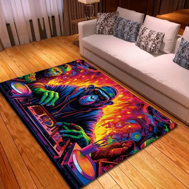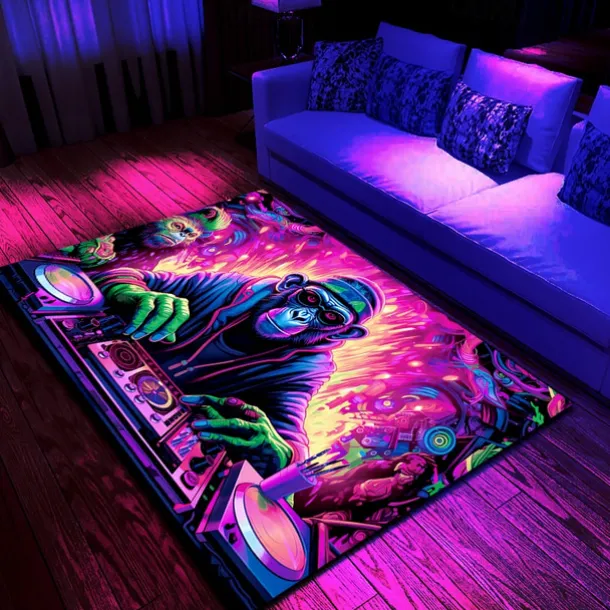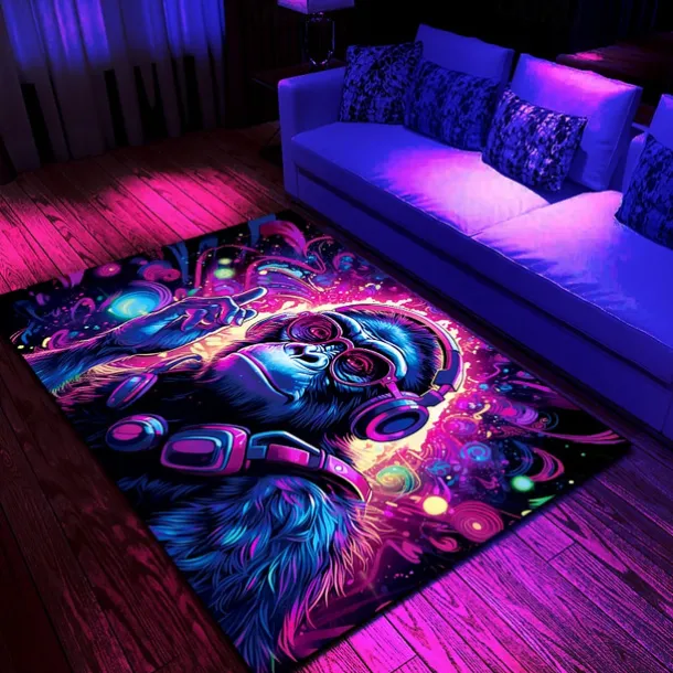 Blacklight Rug UV Reactive Glow in the Dark Area Rug Kitchen Mat Non-Slip Oil Proof Chimpanzees DJ Floor Mat Livingroom Rug Indoor Outdoor Mat Bedroom Decor Bathroom Mat Entrance Rug Door Mat