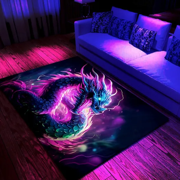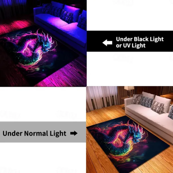 Blacklight Rug UV Reactive Glow in the Dark Area Rug Kitchen Mat Non-Slip Oil Proof Creepy Dragon Floor Mat Livingroom Rug Indoor Outdoor Mat Bedroom Decor Bathroom Mat Entrance Rug Door Mat