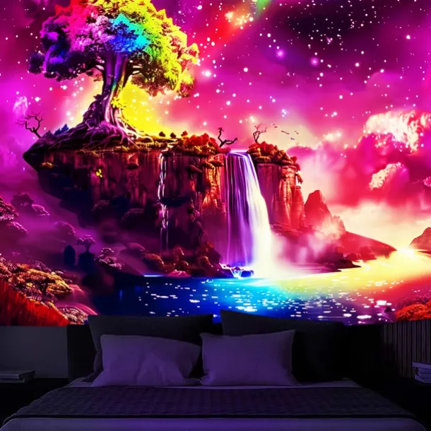 3. UV/Black Light Reactive:This glow in the dark tapestry glows under blacklight / UV light.In normal light, the colors also are full and vivid.