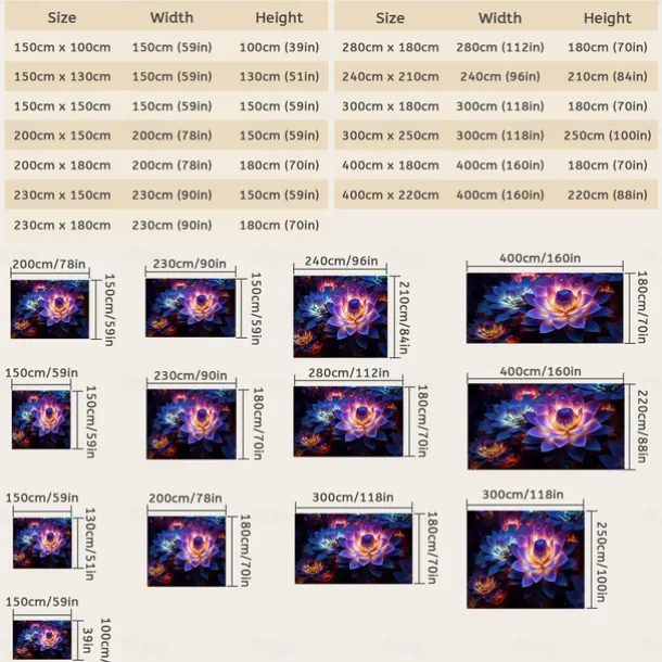 Blacklight Tapestry UV Reactive Glow in the Dark Glow Party Neon Lotus Flower Nature Psychedelic Trippy Misty Hanging Tapestry Wall Art Mural for Living