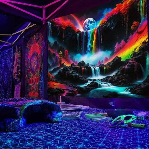 3. UV/Black Light Reactive:This glow in the dark tapestry glows under blacklight / UV light.In normal light, the colors also are full and vivid.