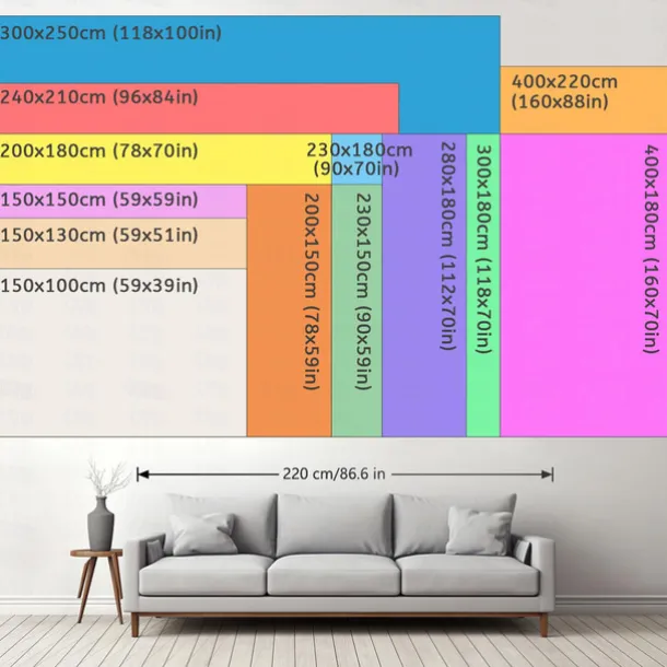 | Size | 150cm * 130cm, 150cm * 150cm, 200cm * 150cm, 200cm * 180cm, 230cm * 150cm, 230cm * 180cm, 300cm * 180cm, 400cm * 180cm |