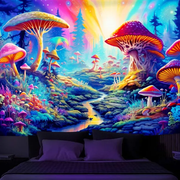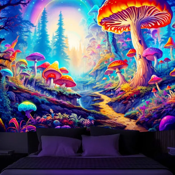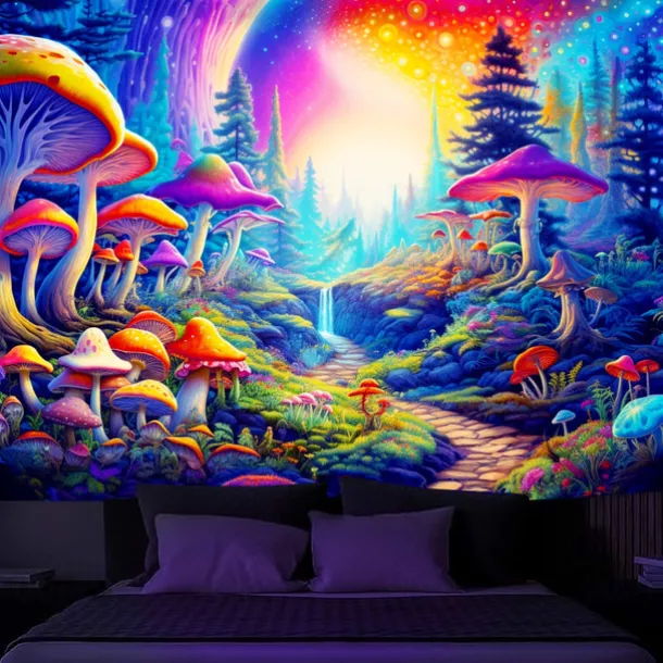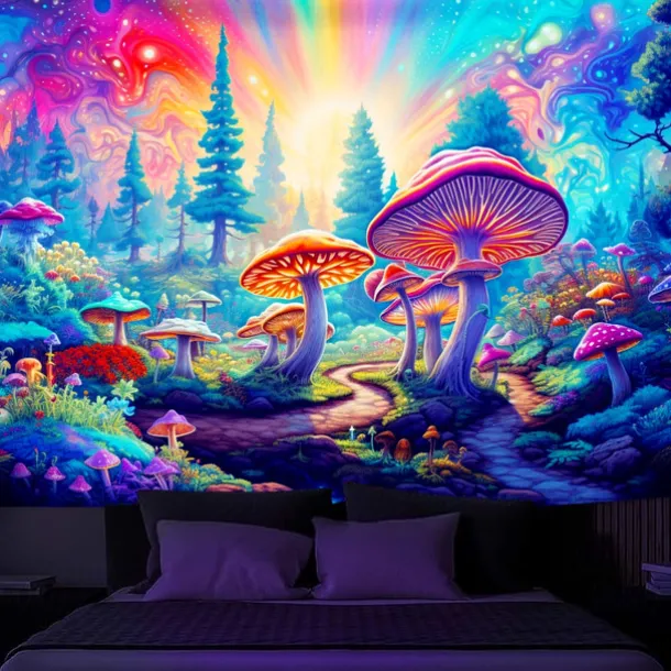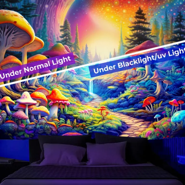 3. UV/Black Light Reactive:This glow in the dark tapestry glows under blacklight / UV light.In normal light, the colors also are full and vivid.