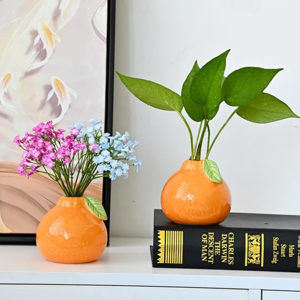Ceramic Mini Vase, Creative Hydroponic Planter for Green Plants, Lucky Pennywort & Fresh Flowers, Tabletop Decoration for Living Room