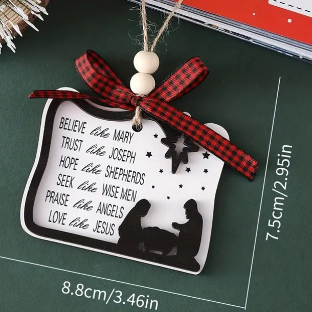 Christmas Nativity Scene Ornaments Believe Like Mary, Trust Like Joseph, Hope Like Shepherds, Seek Like Wise Men, Love Like Jesus Ornament ,Round Wooden Jesus Sign Nativity Ornaments