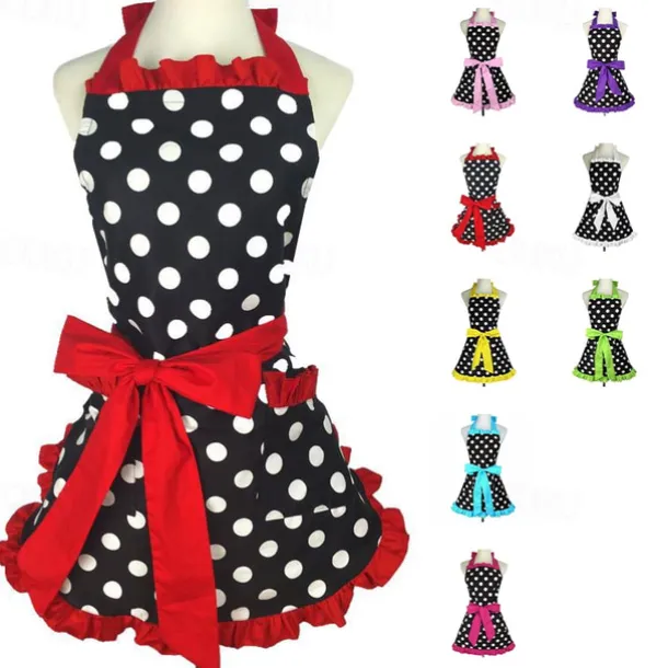 Cotton Chef Apron For Women and Men, Kitchen Cooking Apron, Personalised Gardening Apron Polka Dots Salon Pinafore Vintage Apron Mother’s Gift
