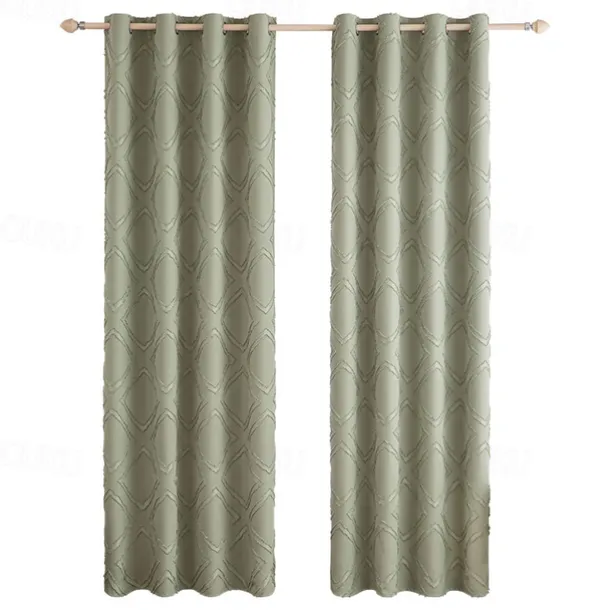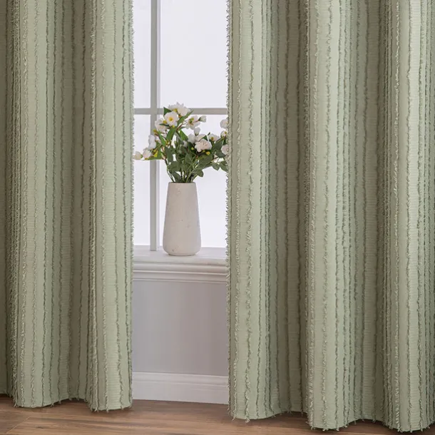 Cotton Linen Striped Curtain Fabric Sage Green Tufted Blackout Curtain For The Livingroom