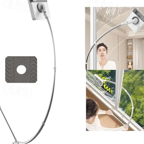 Curved Window Cleaning Brush with Long Handle – Multi-Purpose Squeegee Tool with Extension Rod for Glass Door, Car, Home Floor