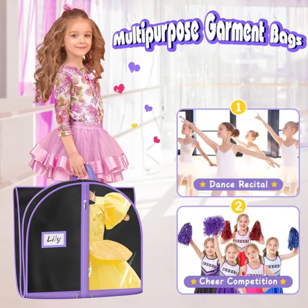 Dance Garment Bags for Dancers with 4 Pockets Garment Bags for Dance Costumes 40″ Cheer Uniform Garment Bag Hanging Kids Garment Bag for Recital, Competition, Travel, Storage