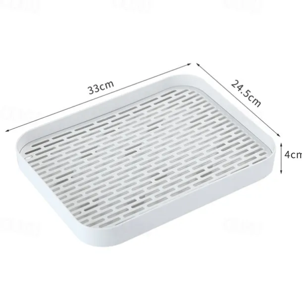 Double-Layer Plastic Dish Rack with Drainage Tray for Tableware, Fruit, and Bowl Storage