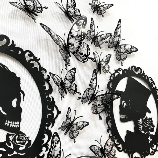 Double Layer Skull Rose Halloween 3d Three-dimensional Butterfly Home Decoration Stickers