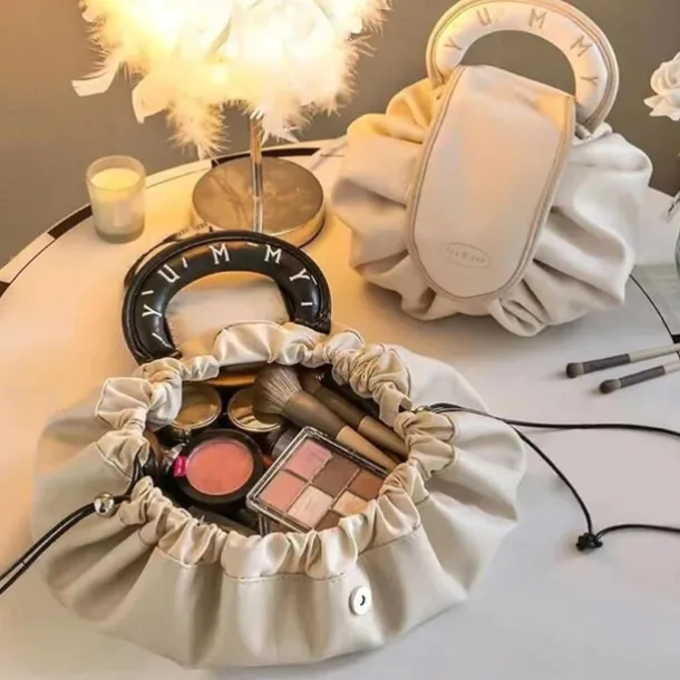 Drawstring Makeup Bag, Large Cosmetic Bag, Portable Waterproof Toiletry Organizer for Women, Travel Makeup Pouch, Female Cosmetic Bag, Make Up Bags for Toiletries and Accessories