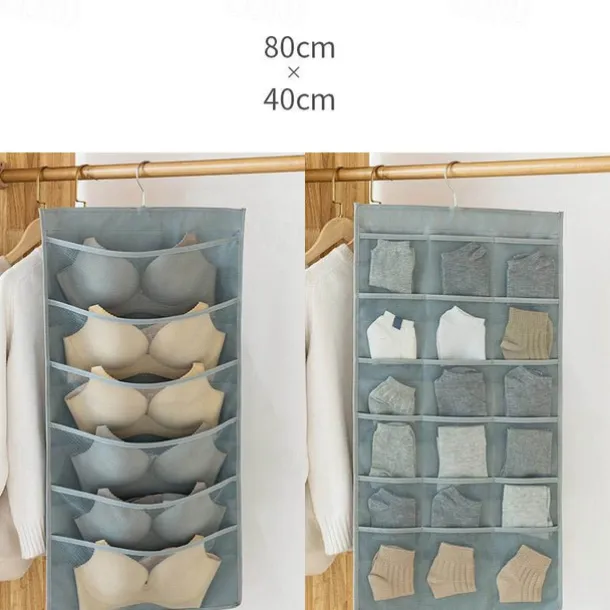 Dual-Sided Hanging Closet Organizer Pocket for Underwear Stocking Toiletries Accessories Bra Dresser Panty Socks Drawers Home Basics