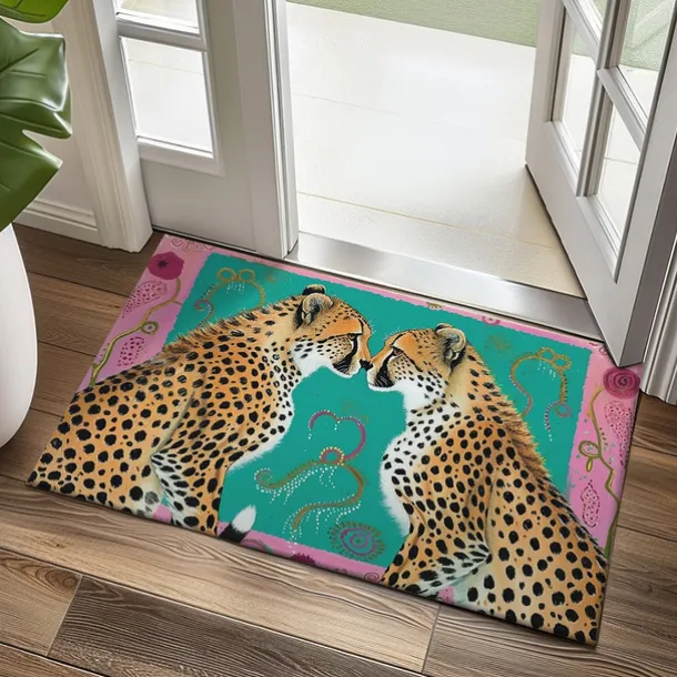 Duo Leopards Doormat Floor Mats Washable Rugs Kitchen Mat Non-Slip Oil Proof Rug Indoor Outdoor Mat Bedroom Decor Bathroom Mat Entrance Rug
