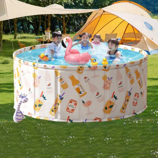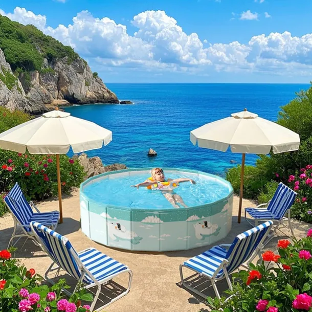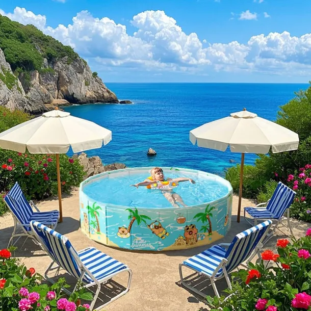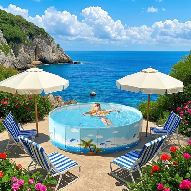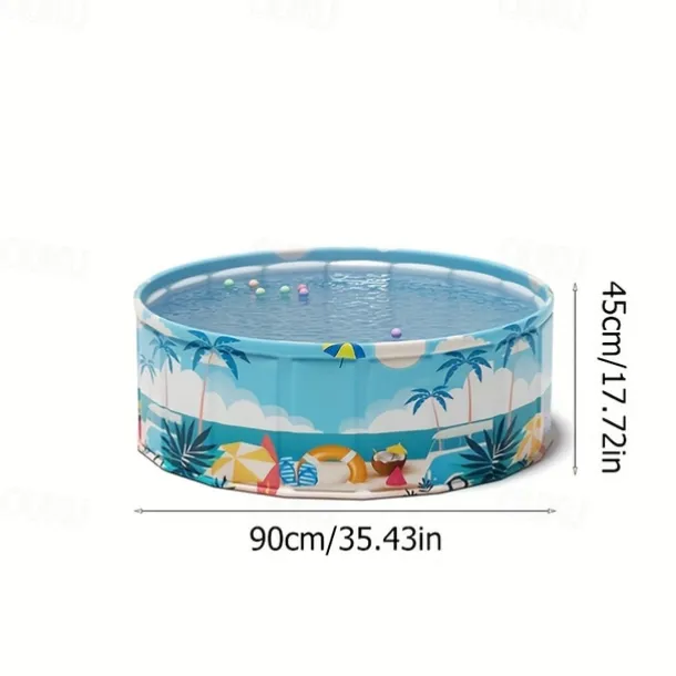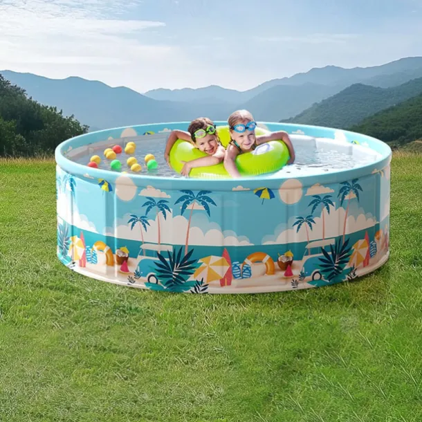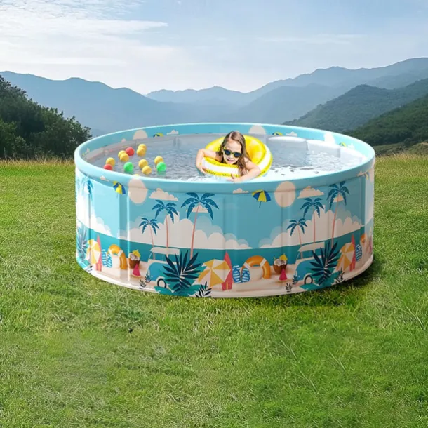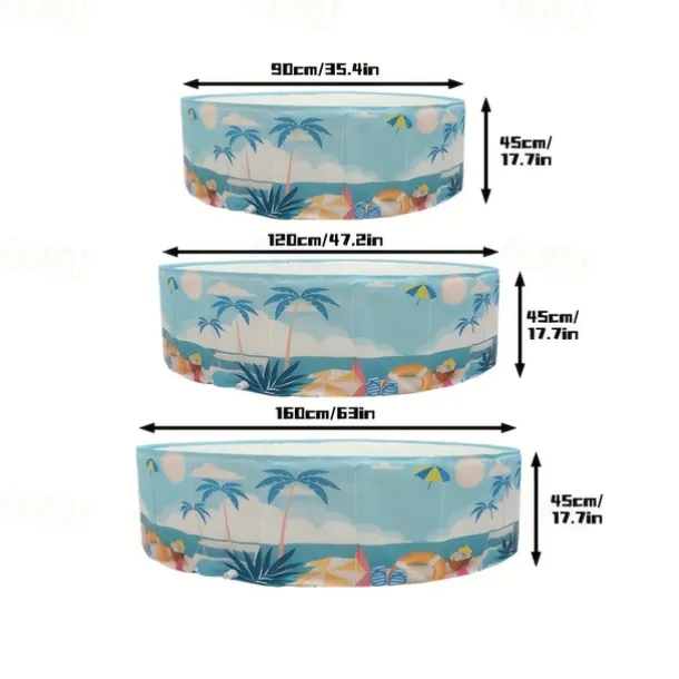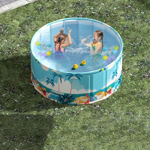 Durable PVC Tropical Family Fun Round Swimming Pool Foldable, No Inflation Needed, Perfect for Backyard Gatherings & Indoor Play Blue Palm Tree Design, Leisure Pool, Summer Vibes Pool, Pool Floats