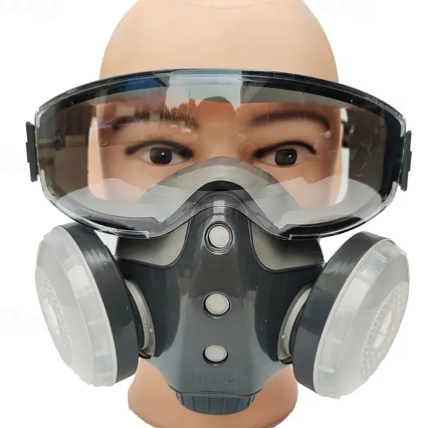 Dust-proof Integrated Respirator Mask Woodworking Tools, Reusable Half Mask with Goggles, Anti-dust Mask for Spray Painting Woodworking, Safety Construction Gear, Protector
