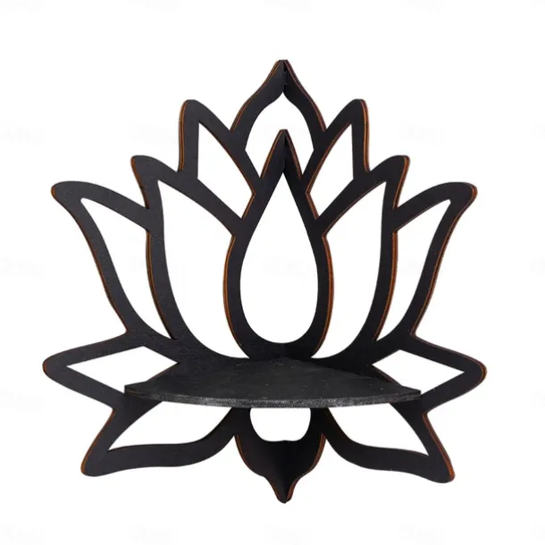 Elegant Wooden Lotus Single Tier Wall Shelf for Home Decor and Storage