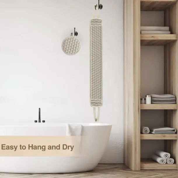 – Convenient and easy to use, simply soak in warm water before use and apply shower gel for abundant foam. Hang it up to dry after each use. Perfect for home or travel with machine washable and dryer-safe material.