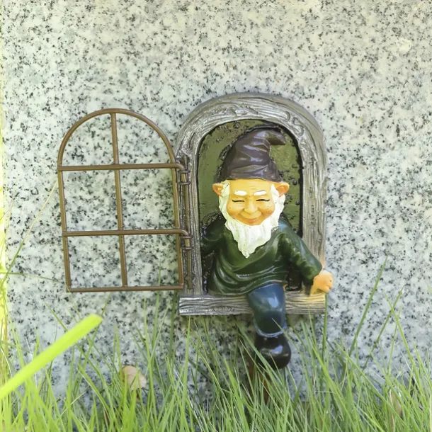 Fairy Tale Playful Goblin Garden Resin Decoration Statue Decoration, Garden Weatherproof Garden Statue, Tree Window Resin Garden Statuette Garden Decoration