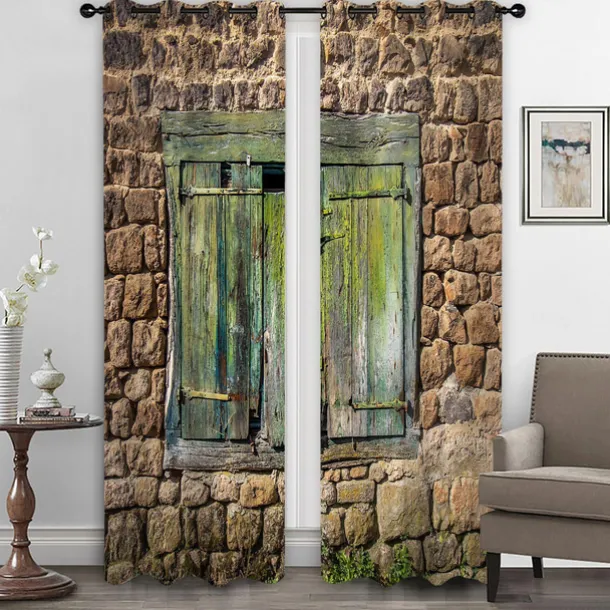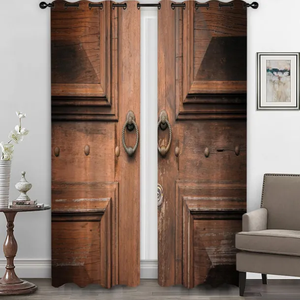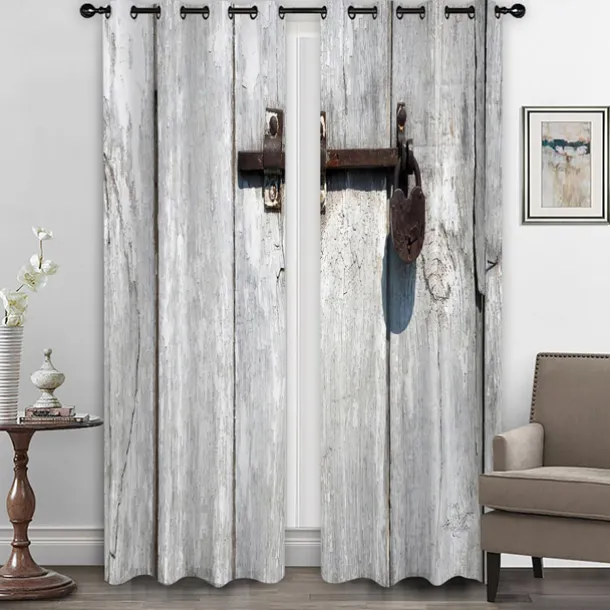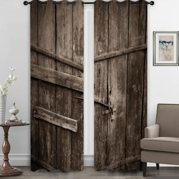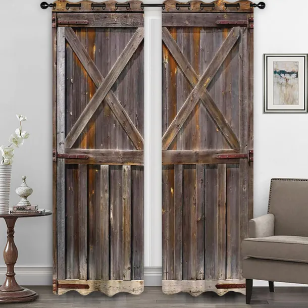 Farmhouse Curtain 2 Panels,Barn Wood Door Curtain Drapes For Living Room Bedroom,Grommet/Eyelet Curtain for Kitchen Door Window Treatments Room Darkening