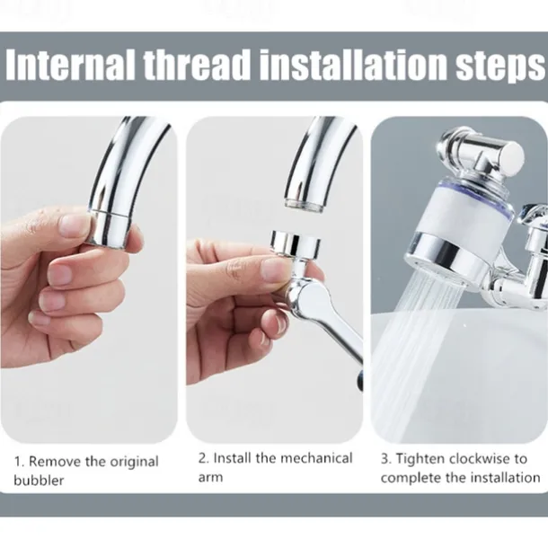 - 【Size】Universal 1080 swivel robotic arm swivel extension faucet aerator fit 3 different design thread. For male 15/16”(24mm),for female 55/64”-27T(22mm), for female G1/2 (20mm)G1/2 (20mm). Compatible with Most Household Sink Faucet Extender.