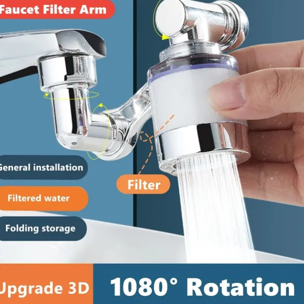 - 【1080° Omnidirectional Potation】Rotating 1080 robotic arm faucet universal model the mechanical arm has three 360° rotation points, can be rotated 1080 degrees, can be easily bent or folded at will, so that the water flow can reach every corner of the sink and reduce splashes in the sink.