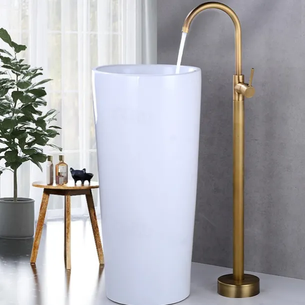 【Floor-standing Design】- Freestanding bath tap, 16 cm large diameter chassis, more stable floor, enhanced durability, perfect match with the bathtub, enjoy the bath time.