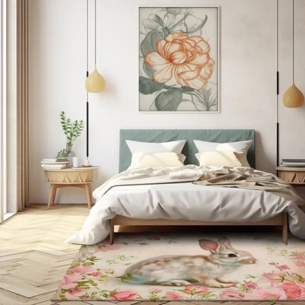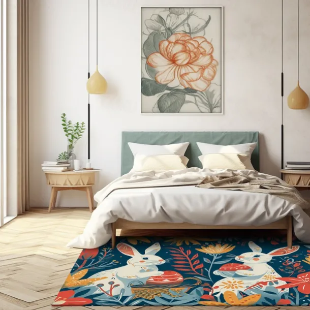 Forest Easter Bunny Area Rug Kitchen Mat Non-Slip Oil Proof Floor Mat Livingroom Rug Indoor Outdoor Mat Bedroom Decor Bathroom Mat Entrance Rug Door Mat