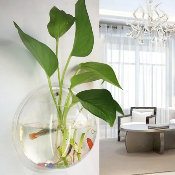 Free Punching Hydroponics Planter, Home Decoration Pot Wall Hanging Mount Bubble Aquarium Bowl Fish Tank Aquarium Home Minipot (Without Plant) Wedding Decoration