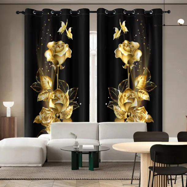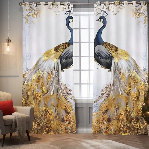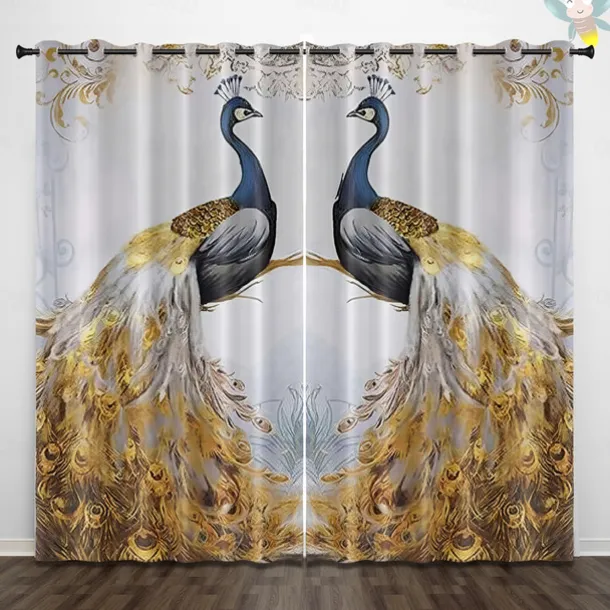 Golden Rose Peacock Insulated Outdoor Balcony Rest Living Room Home Decoration 2-piece Set 3D Digital Printing Perforated Shade Curtains