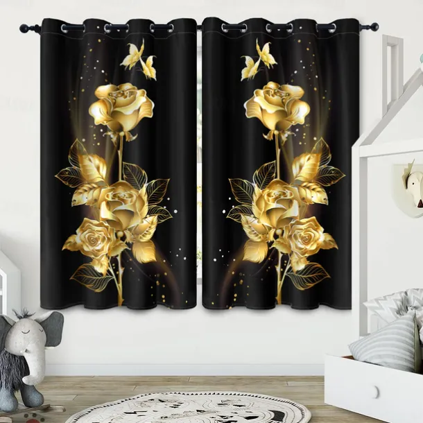 Curtain Type: 3D Curtains, Material: Polyester, Pattern: Floral / Flower, Curtain Fabric: Polyester, Suggested Space Fit: Living Room, Bedroom, Kitchen, Door, Pieces Included: 2 Curtain Panels, Light Filtration: 80%~95% Blackout Light, Product Care Instructions: Machine Washable(Under 30 Celsius), Thermal Insulation: Yes, Life Stage: Adult, Kids,