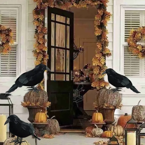 Halloween black crow props simulation flocking crow party supplies ornament decoration