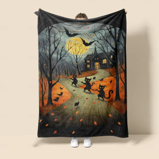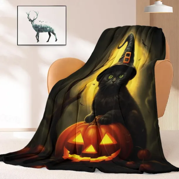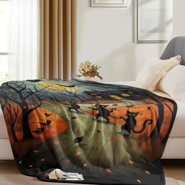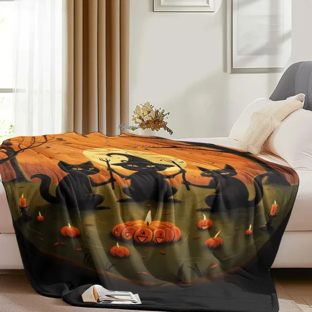 Halloween Decoration Cat Throw Blanket – Soft and Cozy Fleece with Spooky Cat Design – Perfect for Halloween Decor or Snuggling Up – Durable and High-Quality Fabric