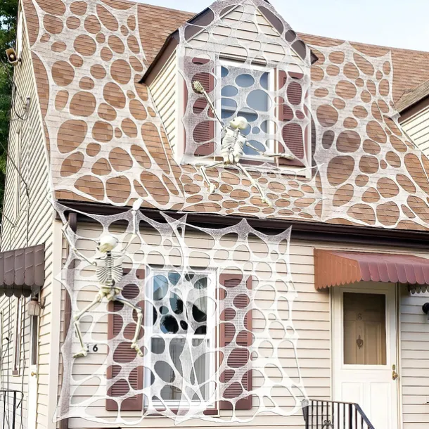 Halloween Decorations Outdoor Spider Web,Stretchy Beef Netting Spiders Webbing Pre-Cut Gauze Cobweb Haunted House Decor