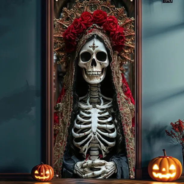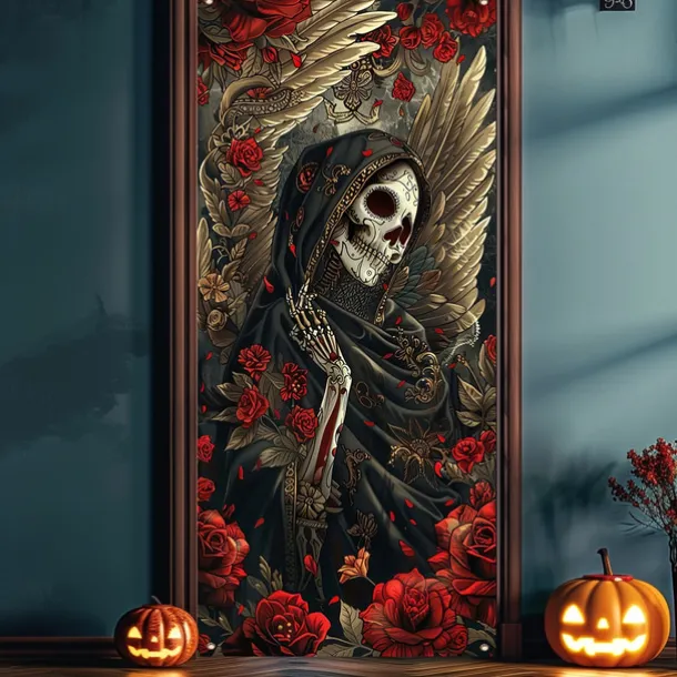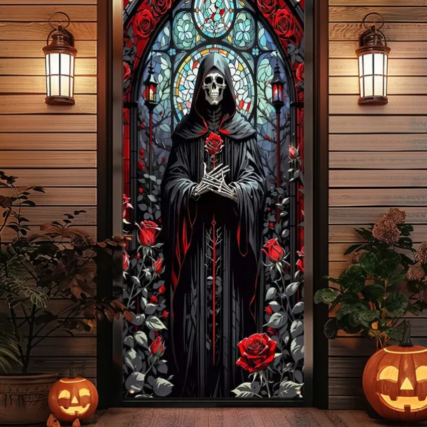 Halloween Door Cover Outdoor Banners Skeleton Psychedelic Dark Punk Gothic Style Party Outdoor Shooting Backgrounds Front Door Wall Porch Decorations Wall Door Background
