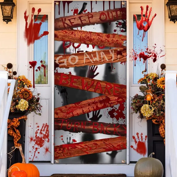 Halloween Door Cover Outdoor Banners Skeleton Psychedelic Dark Punk Gothic Style Party Outdoor Shooting Backgrounds Front Door Wall Porch Decorations Wall Door Background
