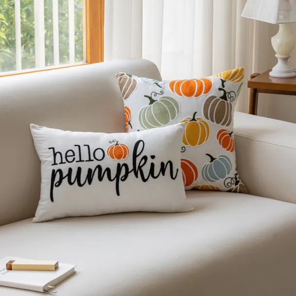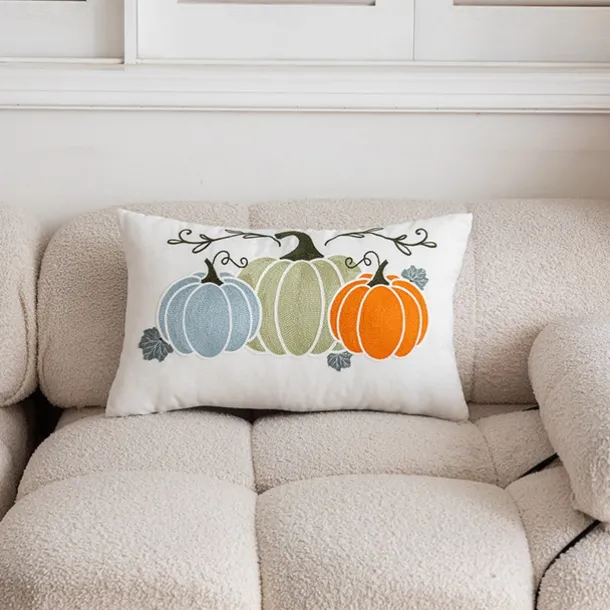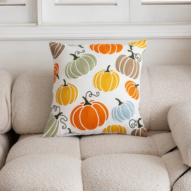 Halloween Emboidery Pumpkins Decorative Toss Pillows Cover 1PC Soft Square Cushion Case Autumn Pillowcase for Bedroom Livingroom Sofa Couch Chair