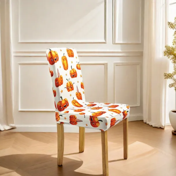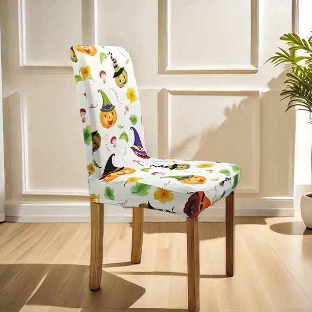 Halloween Printed Dining Chair Covers – Festive Spooky Design, Stretchable and Durable, Perfect for Dining Room Party Decorations