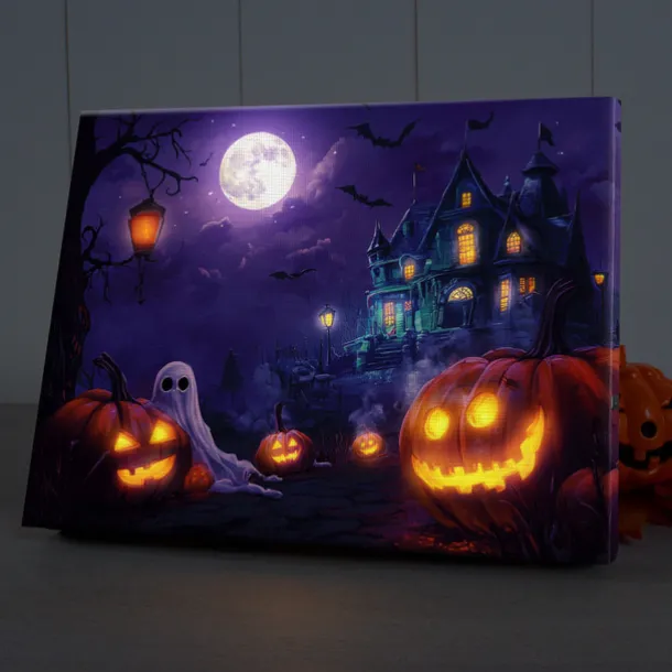 Halloween Pumpkin and Haunted Castle LED Canvas Wall Art – Battery Operated Lighted Wall Decor for 2025 Halloween home decoration light livingroom and bedroom